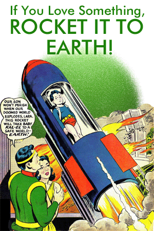 Published july 4, 2016 at 401 × 212 in superman_baby_rocket.. What is 8 + 7? A kryptonian baby from a rocket spaceship came to earth and become adopted by a farming couple, eventually becoming the superhero superman. The rocket is found by eben and sarah kent and eben gets the infant out before the craft explodes. Labs to allow superman to explore space when his space suit would not be enough on its own.